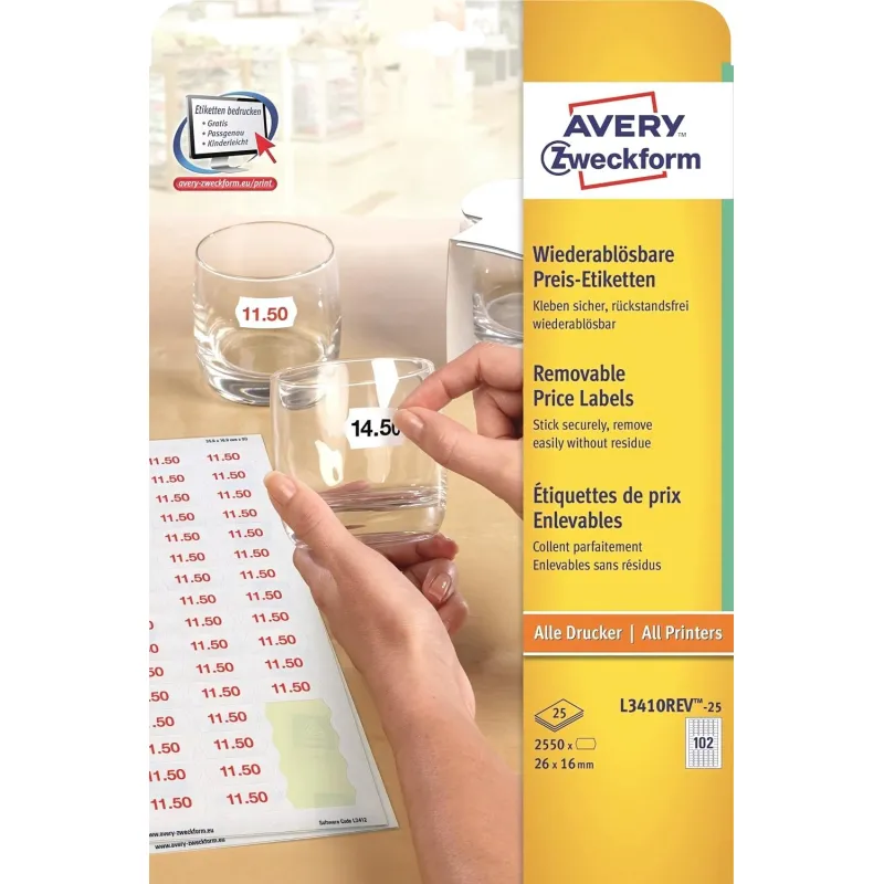 Этикетки самоклеящиеся этикетки-ценники L3410REV-25 26х16мм,25л.,2550шт/уп