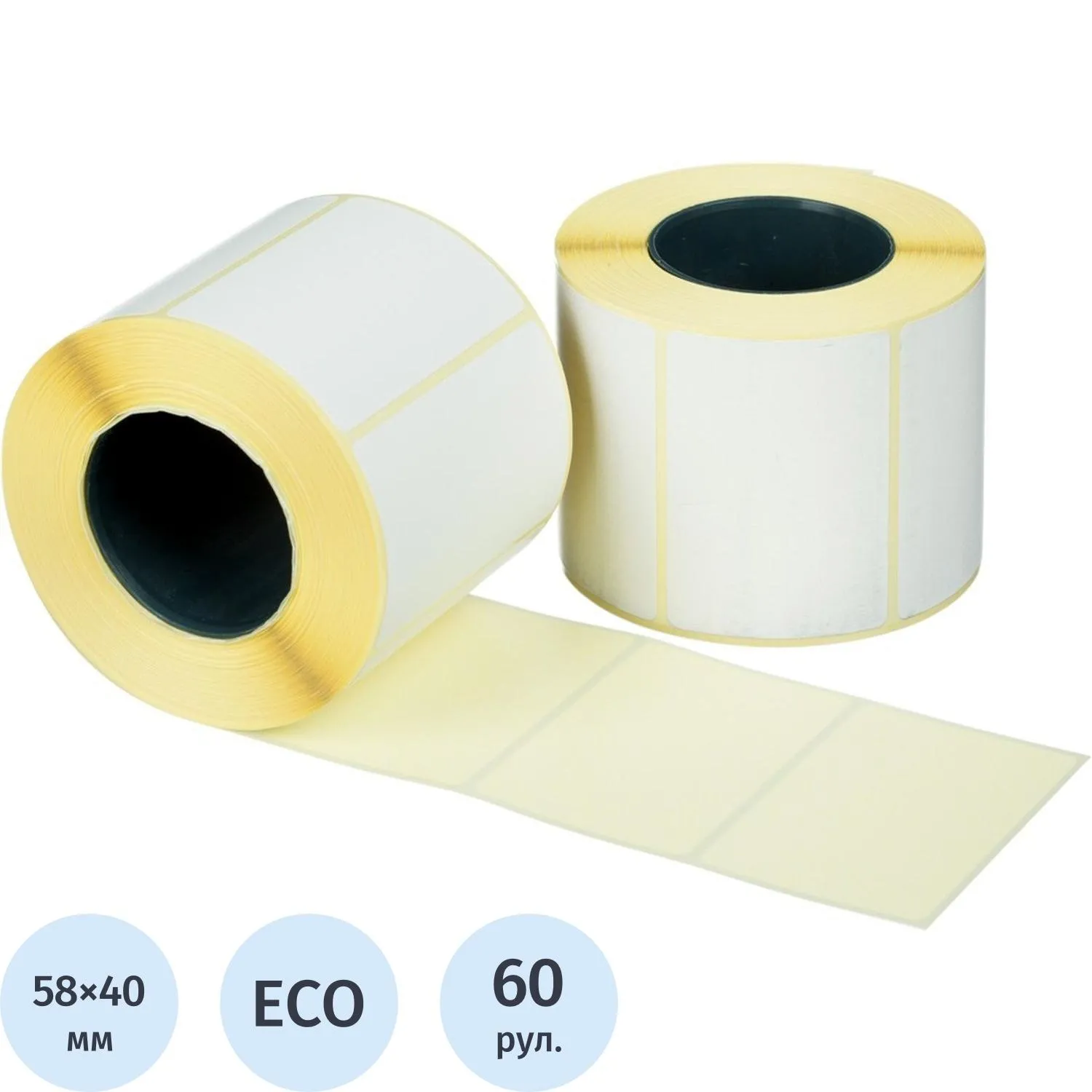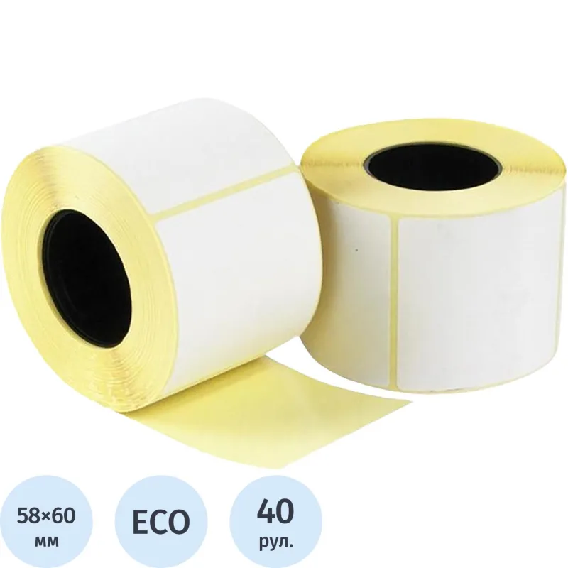Термоэтикетки ЭКО 58х40, 580 шт/рул, вт.40, 60 рул/уп