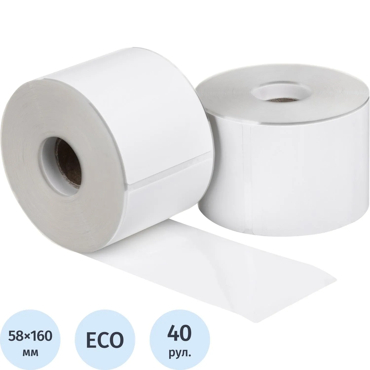 Термоэтикетки ЭКО 58х160, 310шт/рул, пэт подложка с перф., вт.25, 40рул/уп