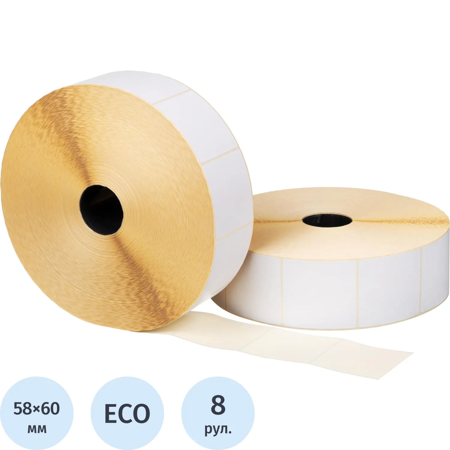 Термоэтикетки ЭКО 58х60,3000шт/рул, вт.40, 10рул/уп /36