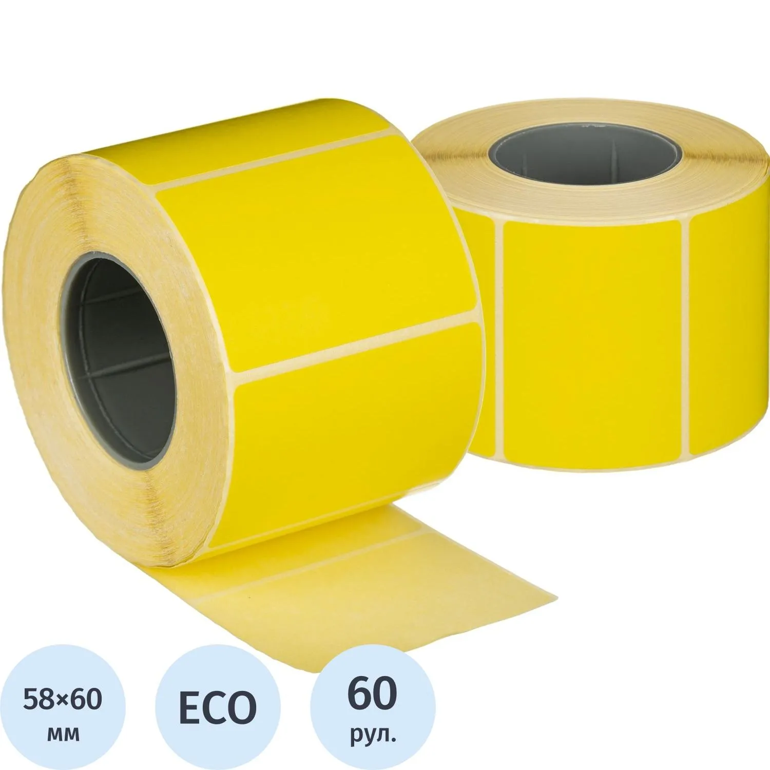 Термоэтикетки ЭКО 58х60, 500шт/рул, желтая, вт.40, 60рул/уп(ФМ)
