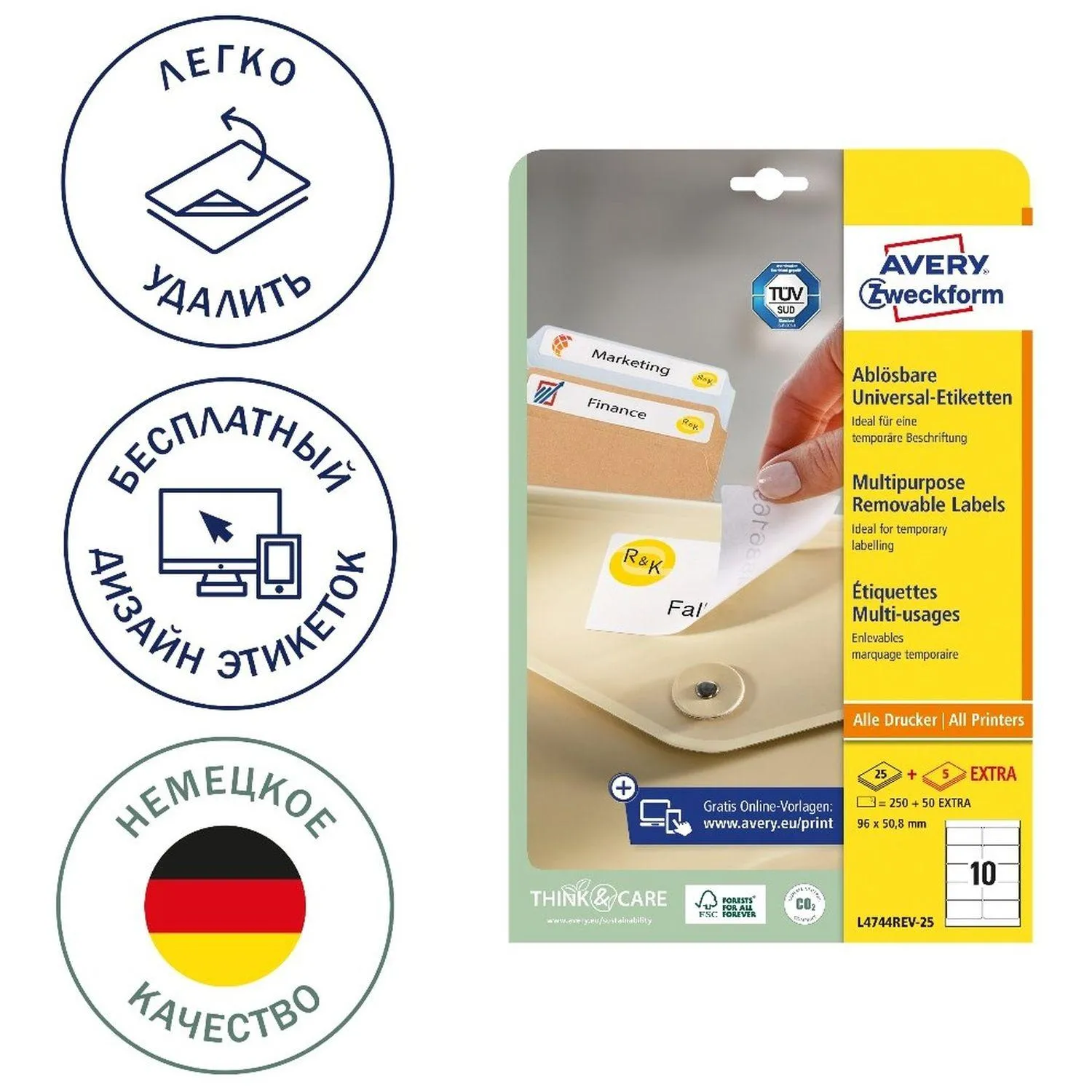 Этикетки самоклеящиеся L4744REV-25 удаляемые, 96х50,8мм, 10шт/л А4, 25л/уп