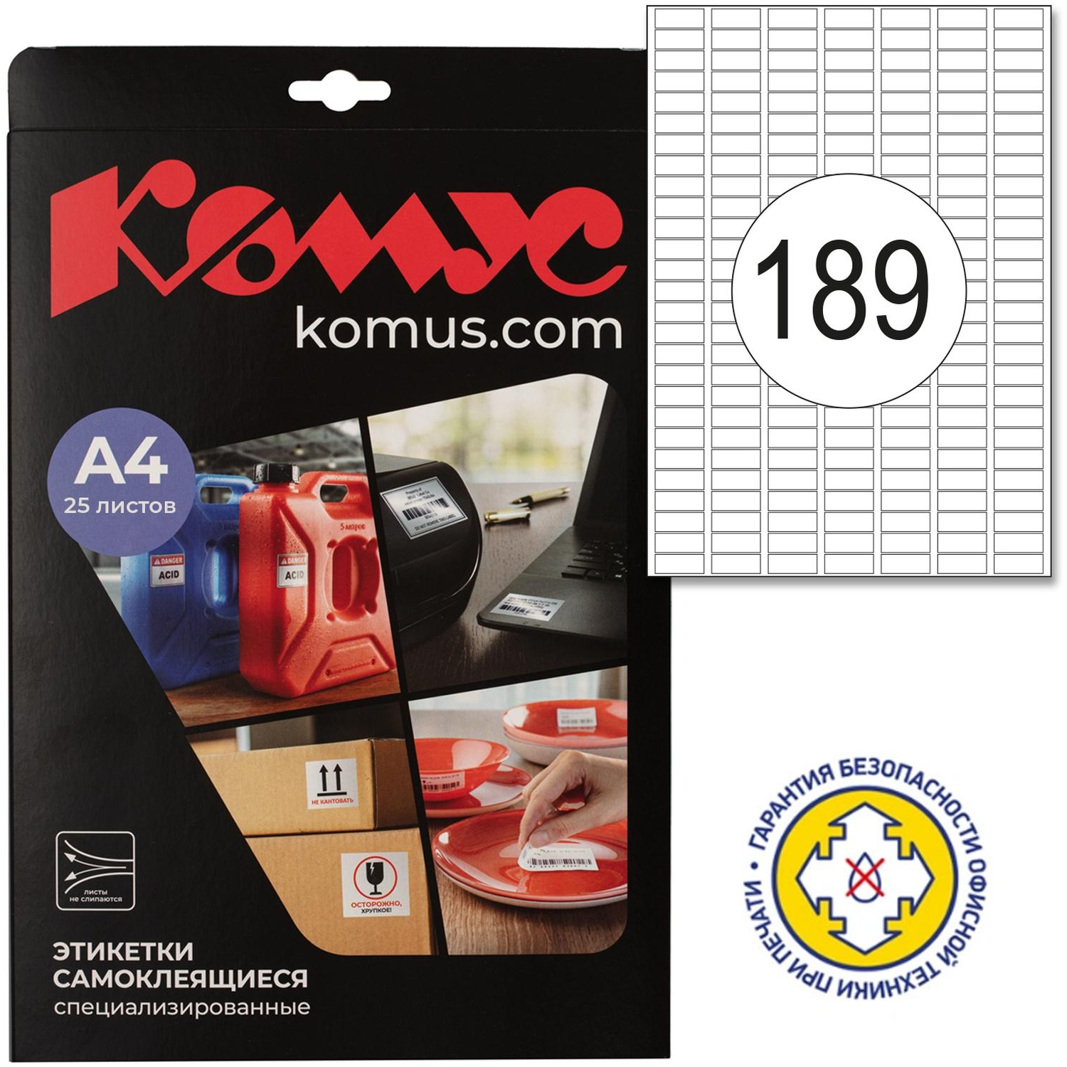 Этикетки самоклеящиеся Комус удаляемые, 35.6х16.9мм,80шт на лист А4,25л