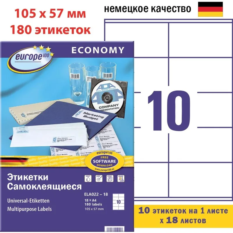 Этикетки самоклеящиеся Europe,105х57мм на листеА4,18л/уп