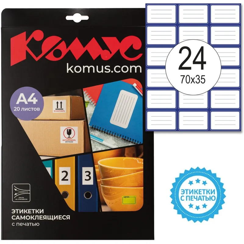 Этикетки самоклеящиеся кауч.к 70х37 24шт/л А4(100л/уп)