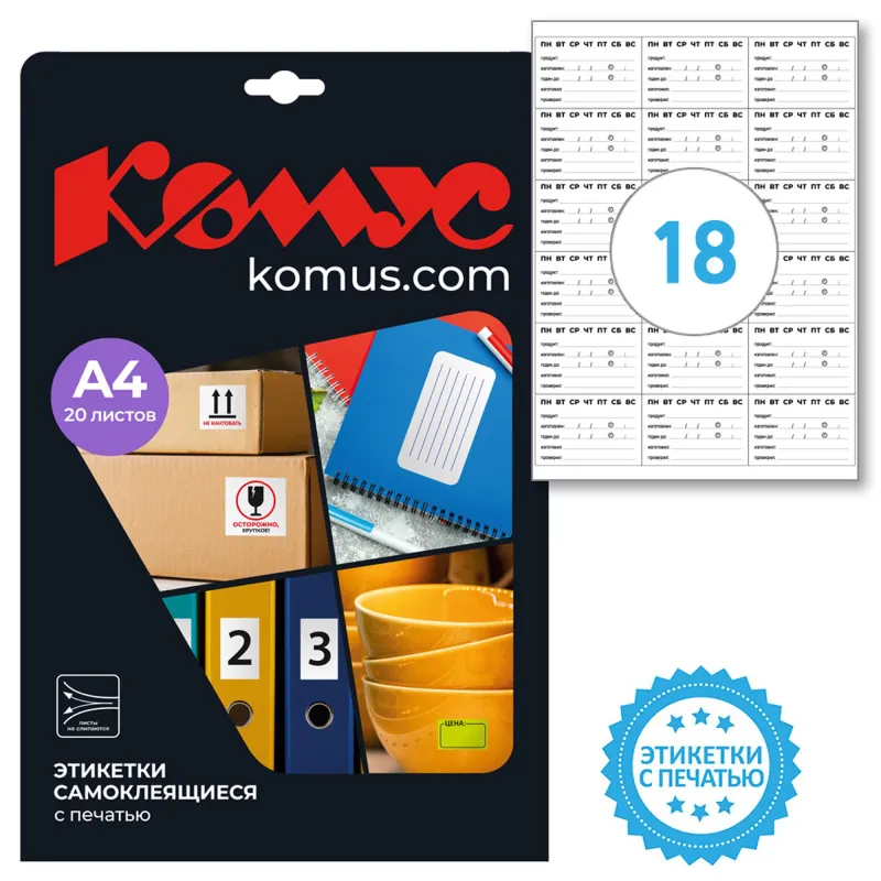 Этикетки самоклеящиеся 70х49,5мм, 18шт на лист А4,100л/уп