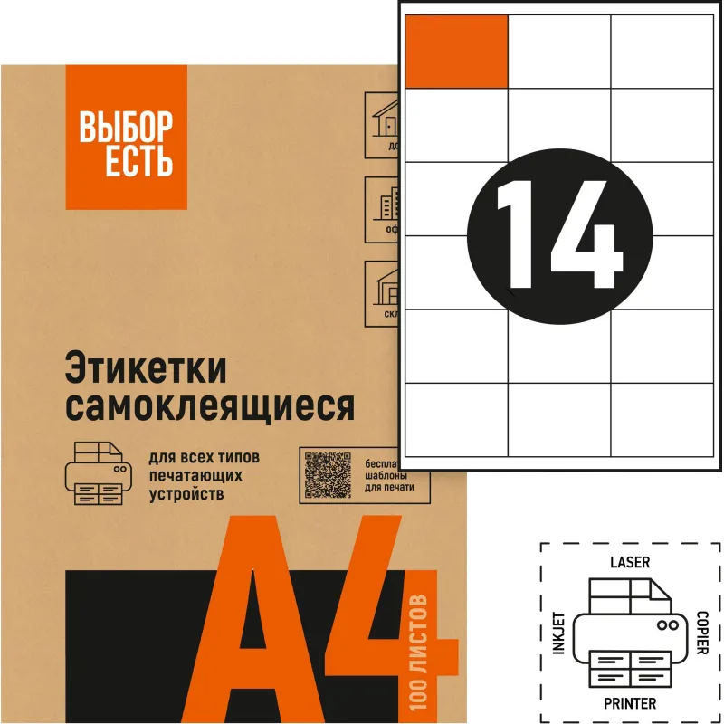 Этикетки самоклеящиеся Выбор есть 105х42,4мм белая, 14шт/лист А4, 100л/уп
