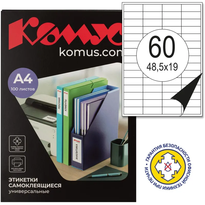 Этикетки самоклеящиеся 48,5х19 мм/60 шт. на листе А4 (100л