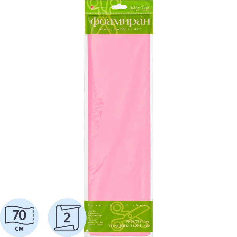 Фоамиран 1ММ, 50х70СМ, РОЗОВЫЙ, 2-146/04