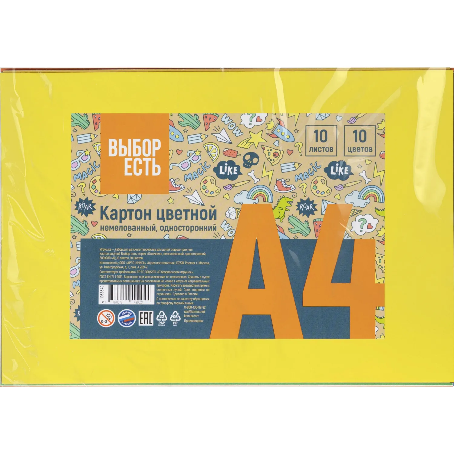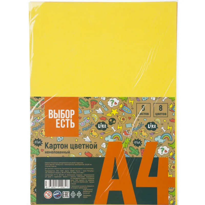 Картон цветной Выбор есть Отличник 10л 10цв А4 немелован.пакет