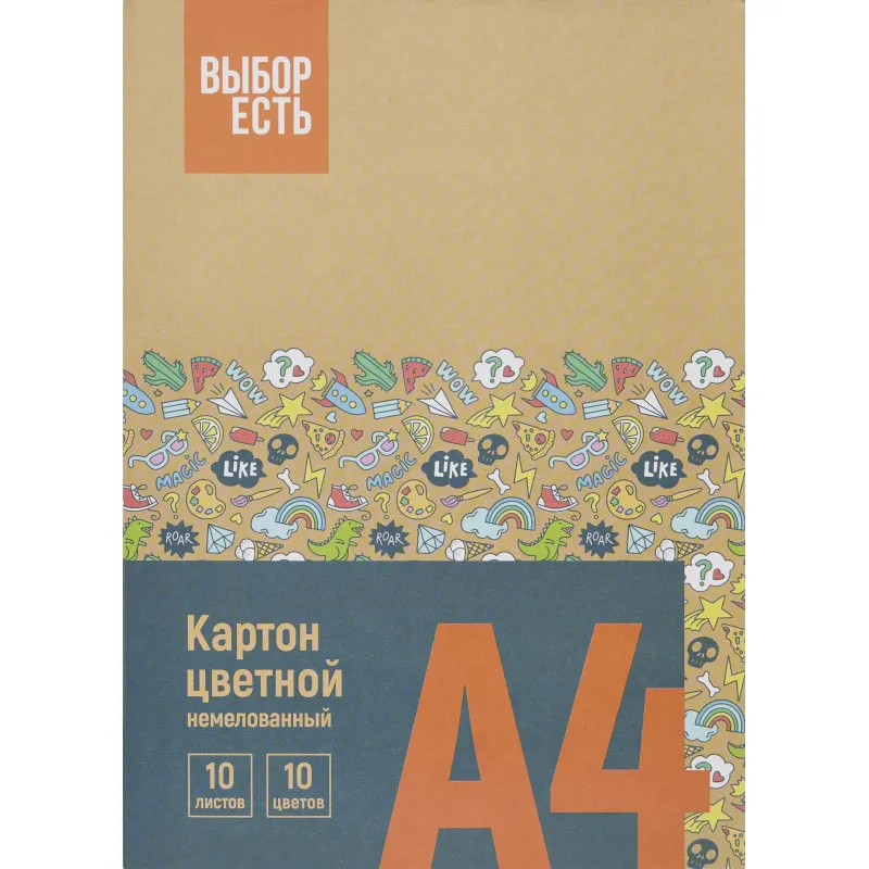 Картон цветной Выбор Есть 10л10цв А4 немелован папка