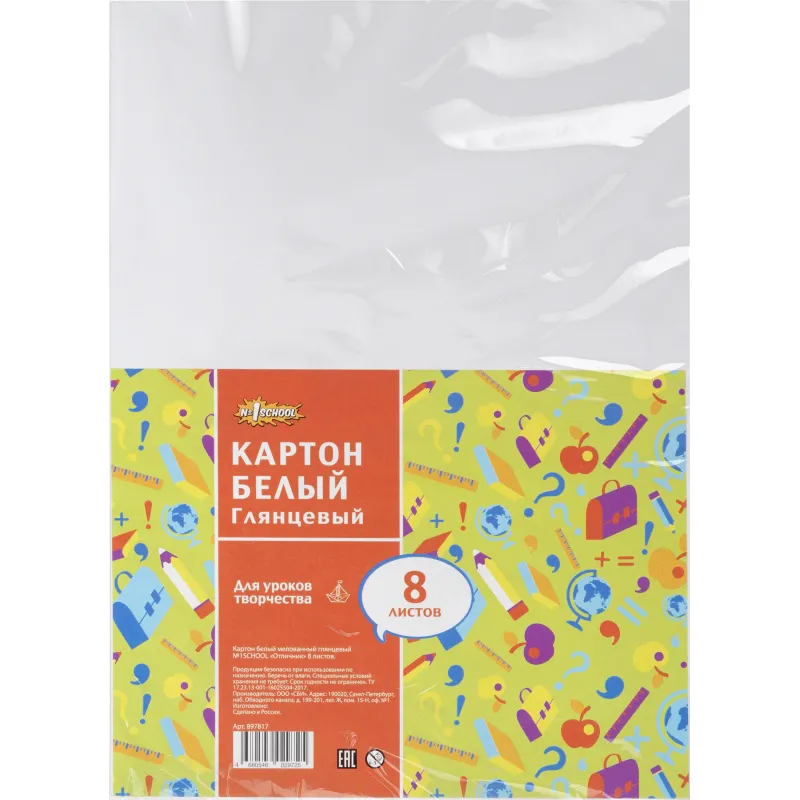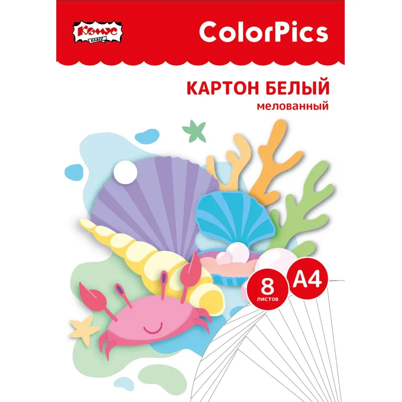 Картон белый 8л,А4 мелованный ColorPics в папке