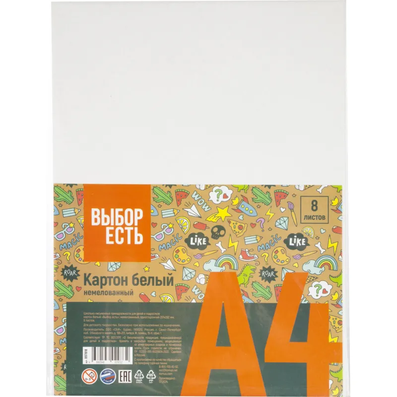Картон белый Выбор Есть 10л А4 немелован папка