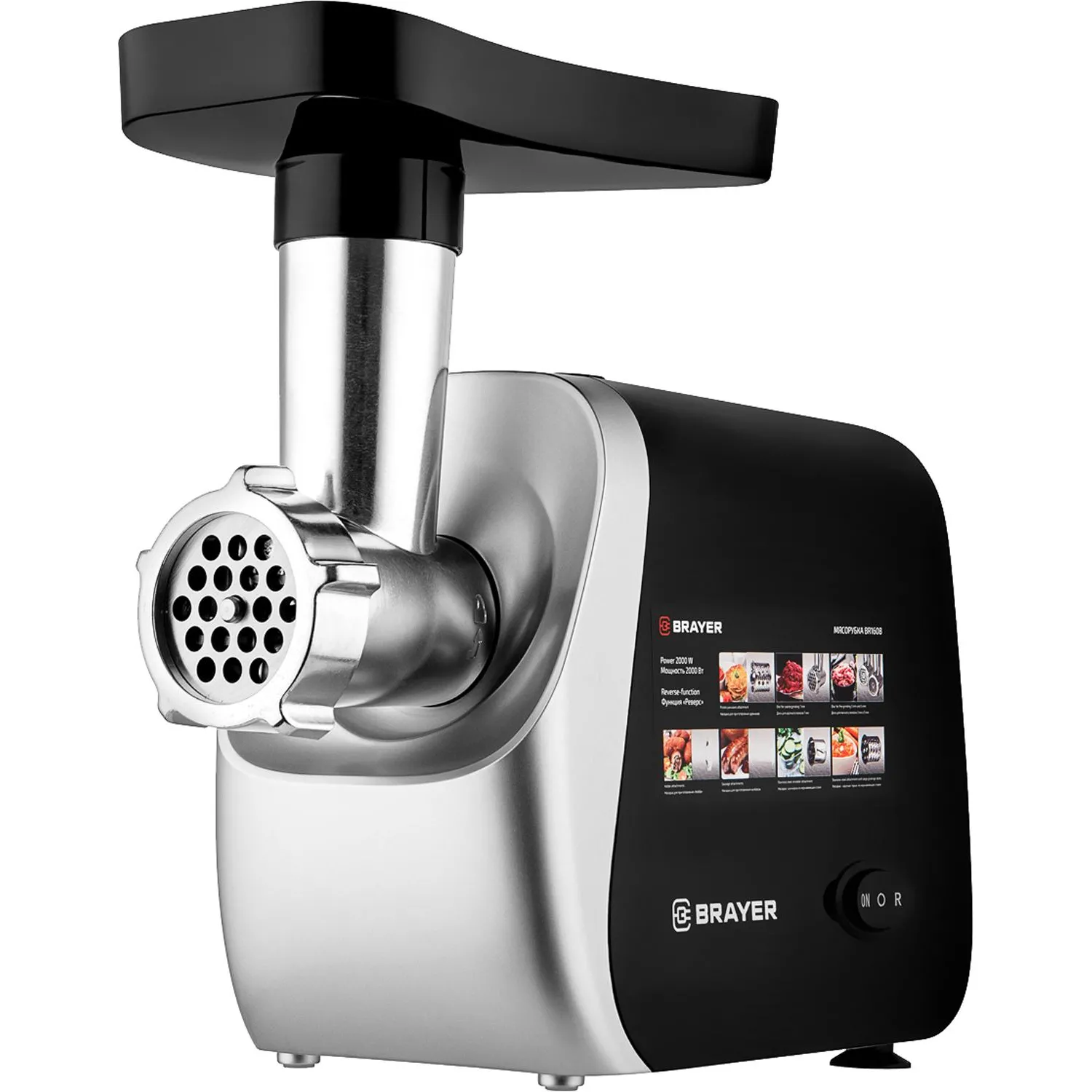 Мясорубка BRAYER 1609BR, 2000 Вт, 3 диска, реверс, 2 кг/мин