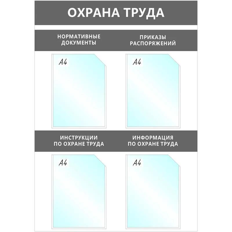 Информационный стенд Охрана Труда, 4 отд.А4, 950х670мм, серый, настенн.