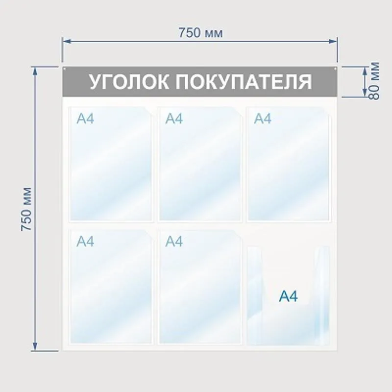 Информационный стенд Уголок покупателя, 4 отд., 500х750, синий, настенный