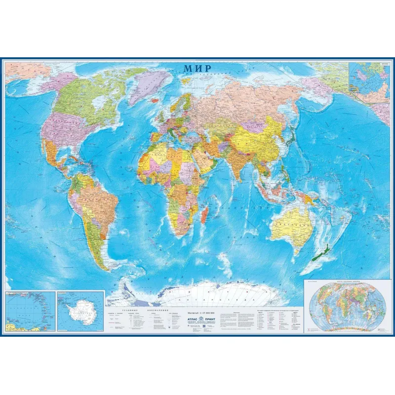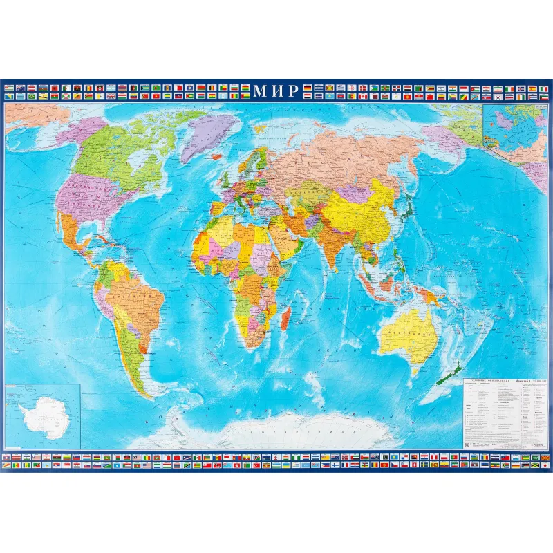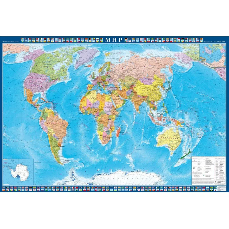 Карта настенная Мир политическая 1:17млн., 2,02х1,43м