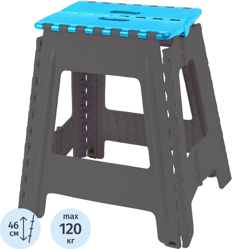 Стремянка -табурет пластик большая складная Color-X серо-голубая