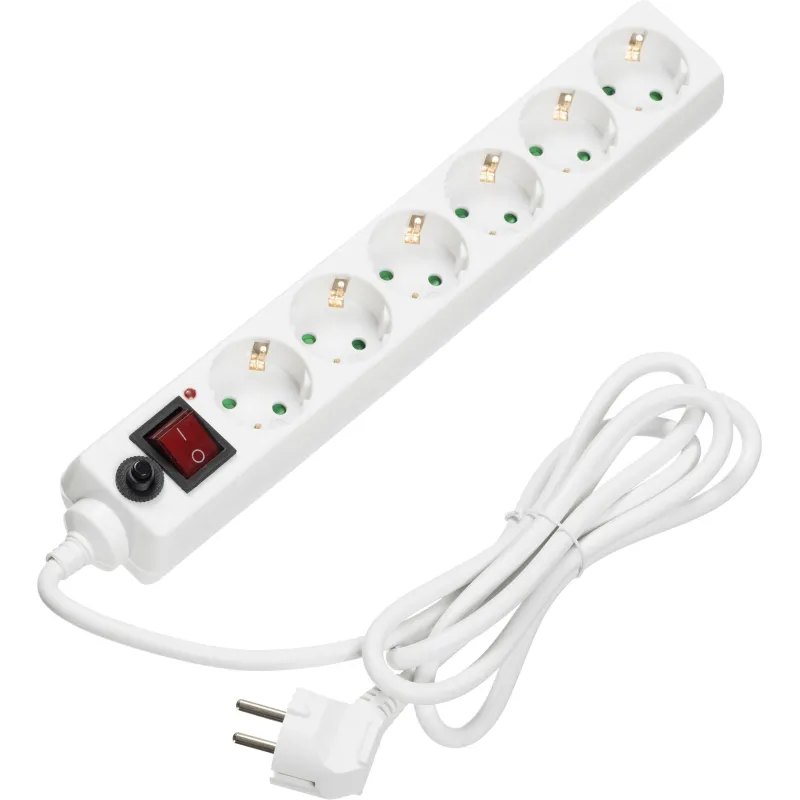 Сетевой фильтр BigTech CD6-1,8W15 (6р/1,8м/16А/3680 Вт 1,5мм белый)