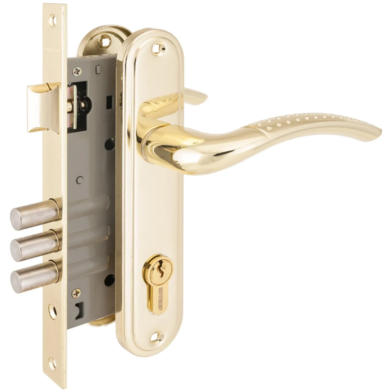 Замок врезной УЗК_Аллюр 132/3 GP сталь латунь(с руч,д/дерев.двери/5кл)