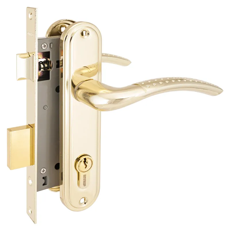 Замок врезной УЗК_Аллюр 132/1 GP сталь латунь(с руч,д/дерев.двери/5кл)