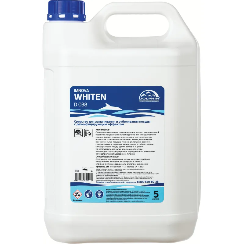 Профхим д/посуды замач/отбел, хлорн. с дез-эфф Dolphin/Imnova WHITEN,5л
