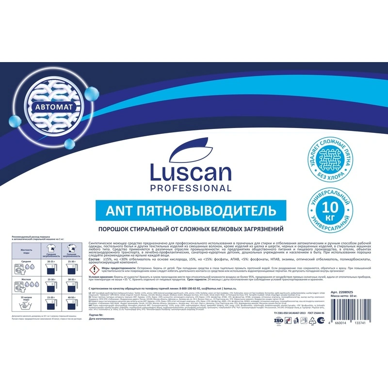Профхим д/стирки порошок-пятновывод. белковых загрязн Luscan Prof/ANT, 10кг