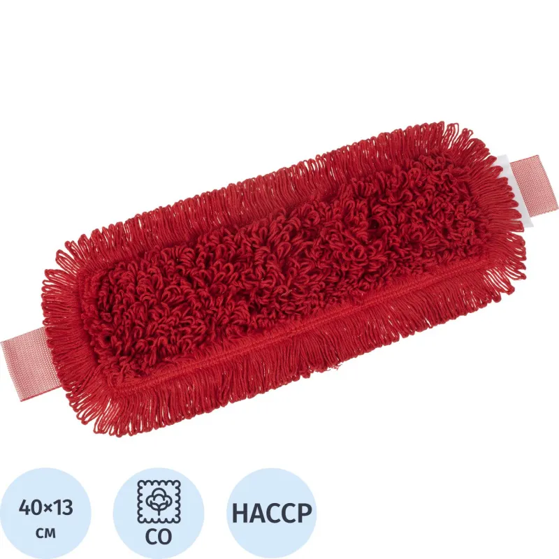 Насадка МОП плоский 40х13см ухо+карман хлопок красный CN3066