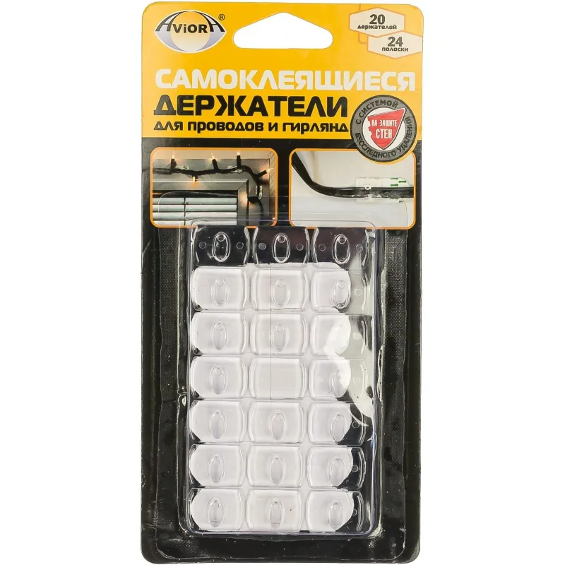 Держатель самоклеящийся для проводов и гирлянд, 20 шт/уп, AVIORA 302-108
