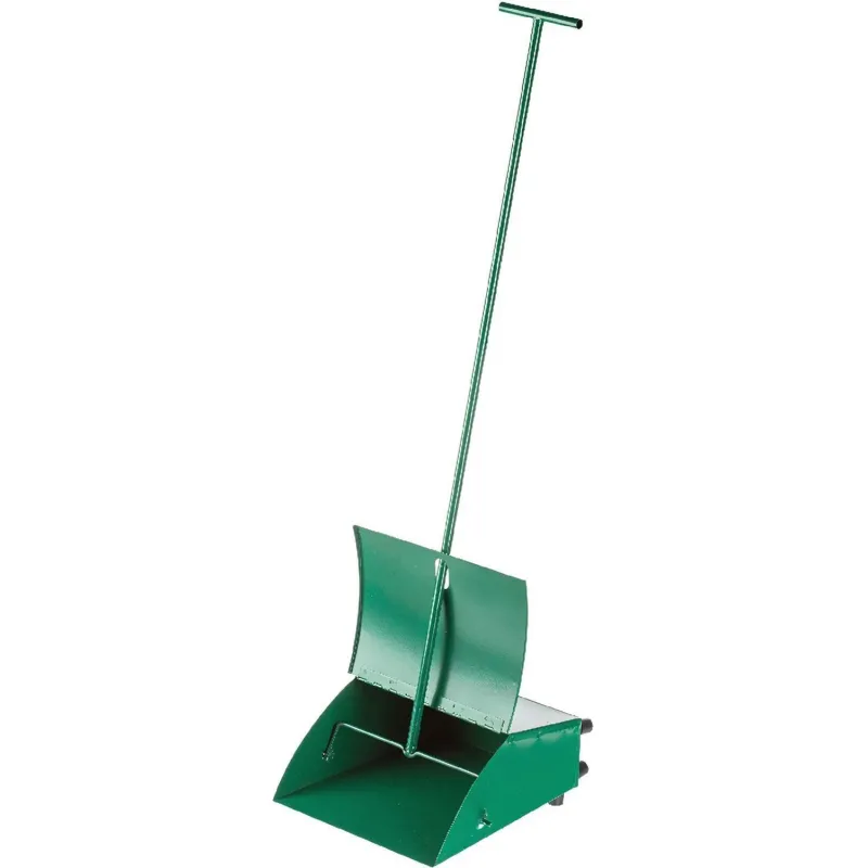 Совок - ловушка для мусора с крышкой Эко металл (ш 27 см, ручка 80 см) зел