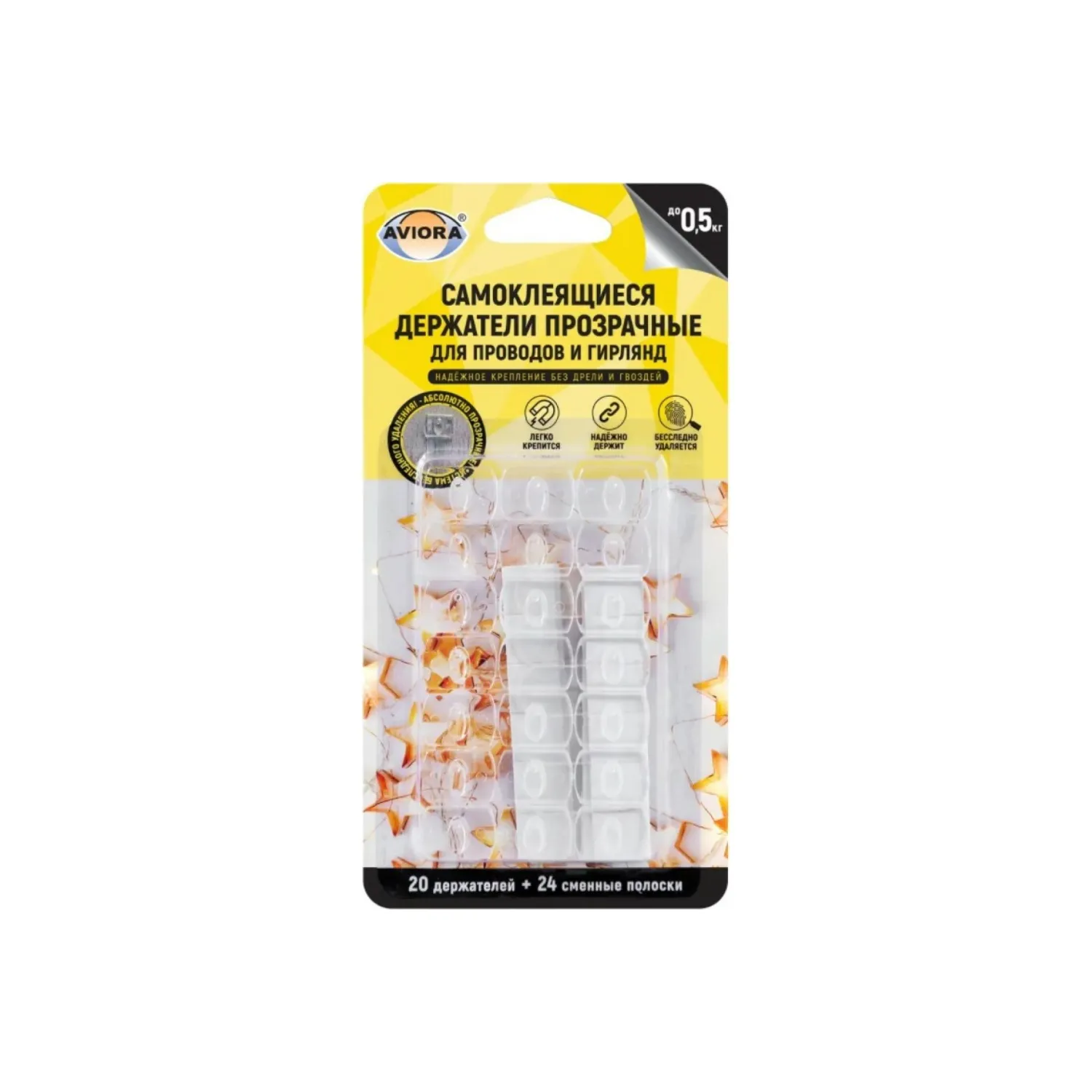 Крючок самоклеющийся прозрачный AVIORA 1шт, 8х8см, блистер (302-170)
