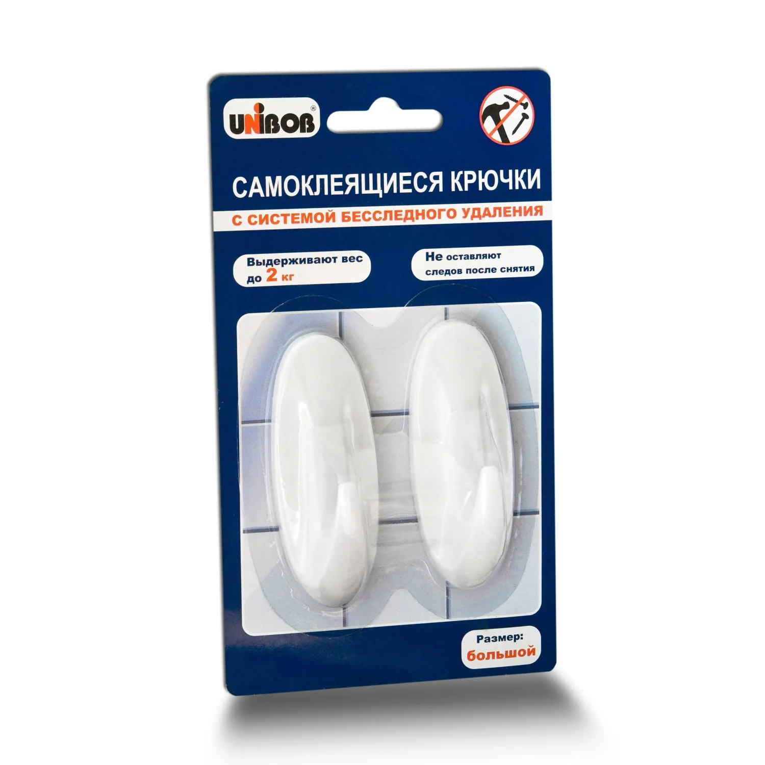 Крючок самокл. UNIBOB светло-серые с системой бесследного удаления 2шт/упак