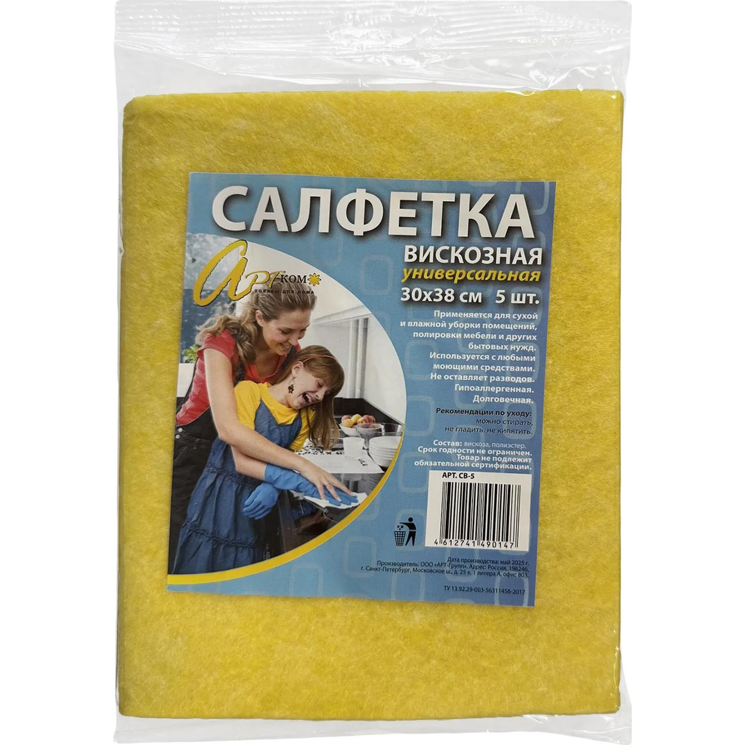 Салфетки хозяйственные вискоза 90г/м2 30х38 желтые 5шт/уп