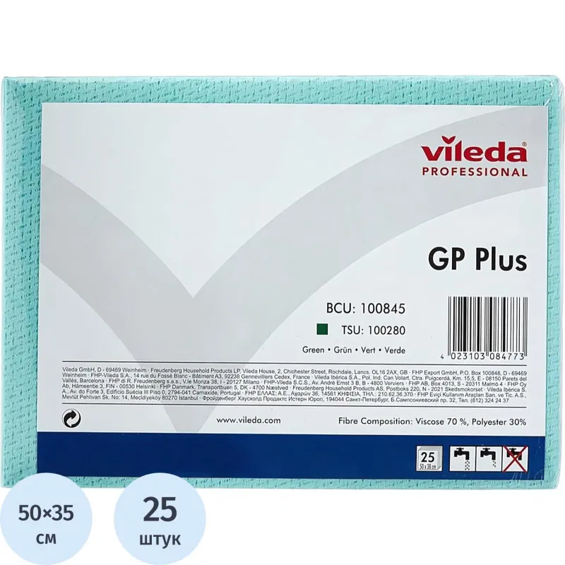 Салфетки хозяйственные Vileda ДжиПи Плюс зеленые 25шт/уп 100845
