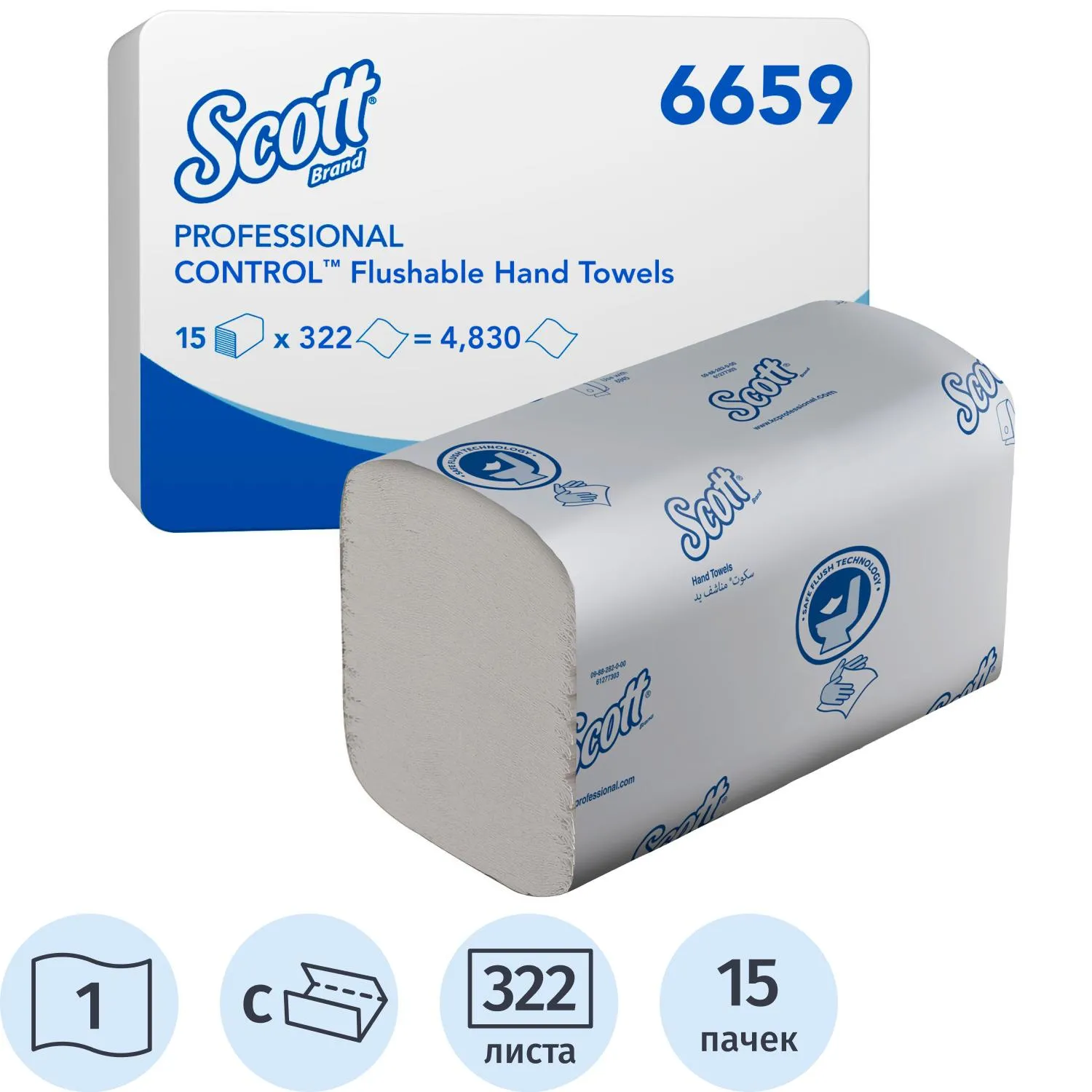 Полотенца бумажные д/дисп KK Scott Perfomance 1слбел С-слож322л15пач/уп6659