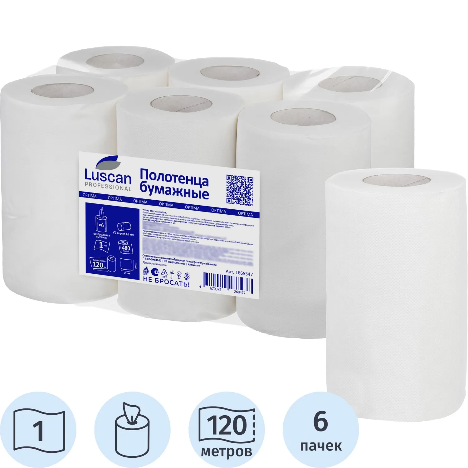 Полотенца бумажные д/дисп Luscan Prof Optima ЦВ 1 слбелцел 120м 6рул/уп