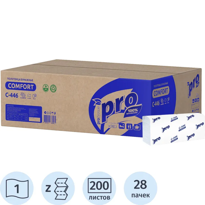 Полотенца бумажные Z слож PROtissue 1сл 200л 28пач/уп С446