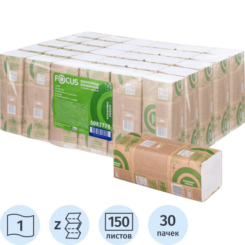 Полотенца бумажные д/дисп. FOCUS Z-сл 1 сл 24х21,5см 150л/30пач/уп