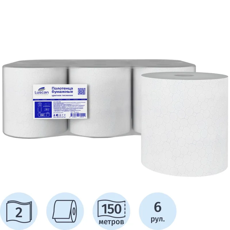 Полотенца бумажные д/дисп. Luscan Prof /2сл. цвет.тиснение 150м, 6рул/уп