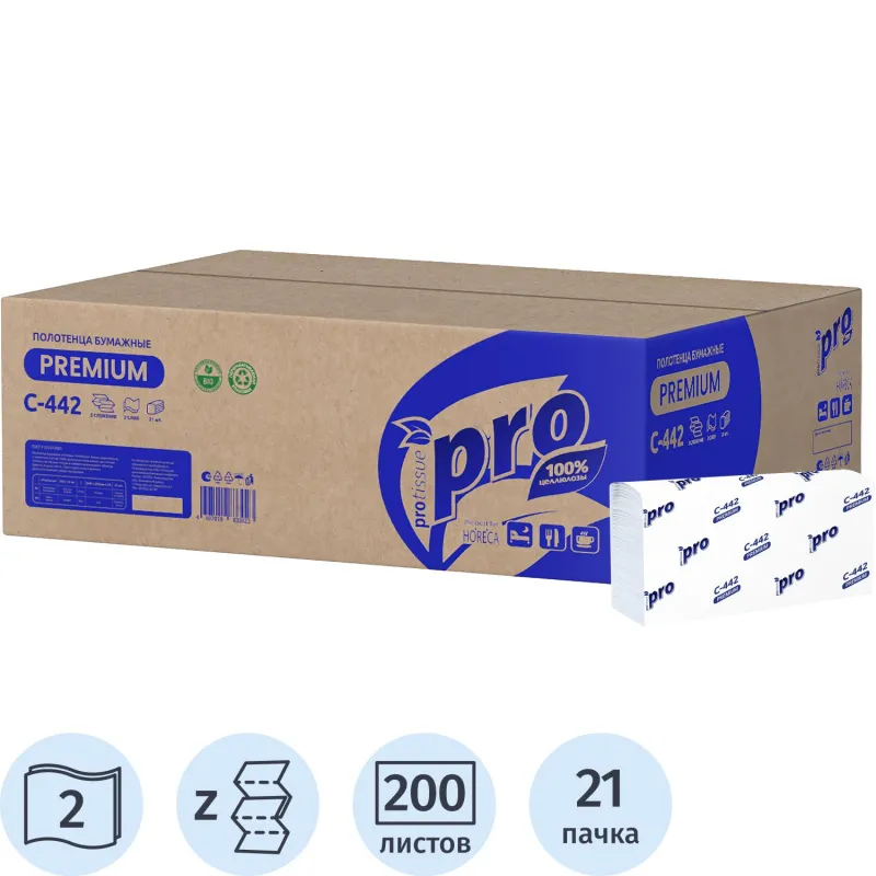 Полотенца бумажные Z слож PROtissue 2сл 200л 21пач/уп С442
