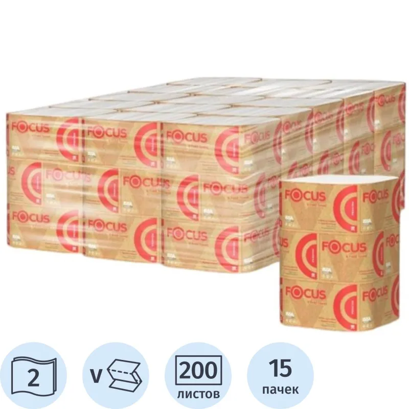 Полотенца бумажные д/дисп. FOCUS PremiumVсл 2сл 200л15пач/уп 5083739 п/э
