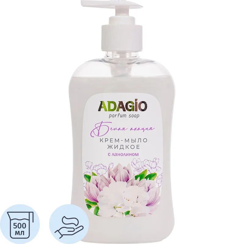 Крем-мыло АДАЖИО 500мл Белая акация с дозатором (белое)