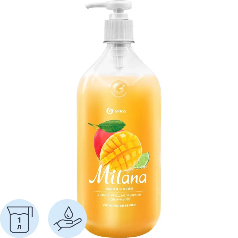 Крем-мыло жидкое Grass Milana увлажняющее манго и лайм 1000мл