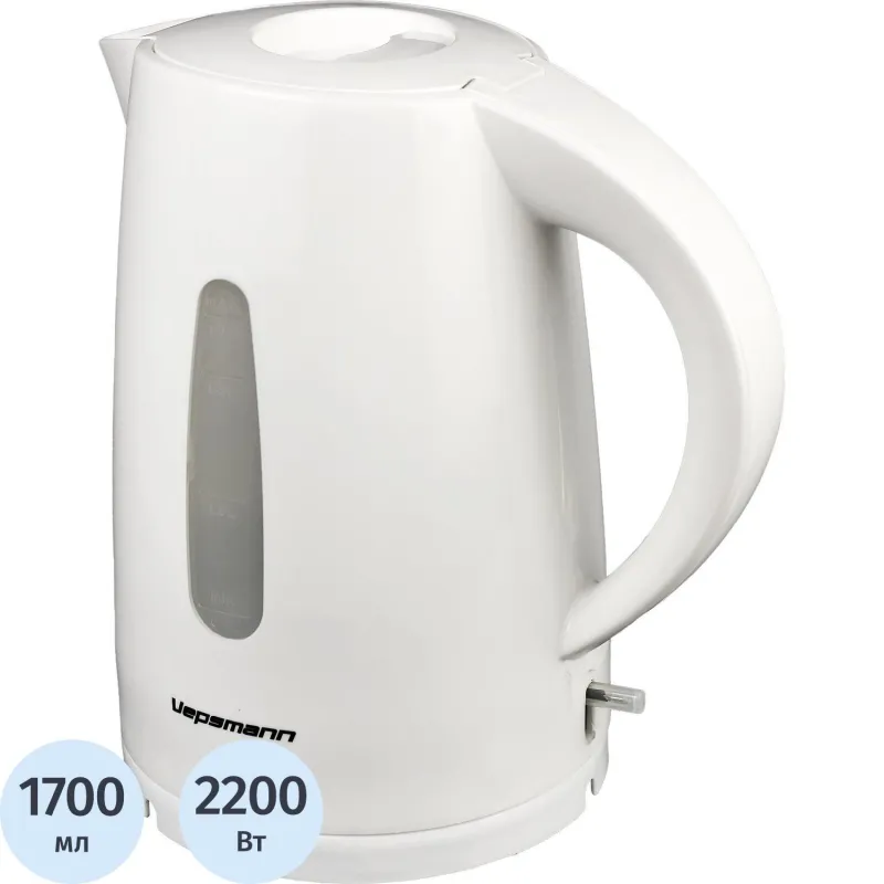 Чайник VEPSMANN VN-170, электрический, 1,7 л/1850-2200 Вт, белый