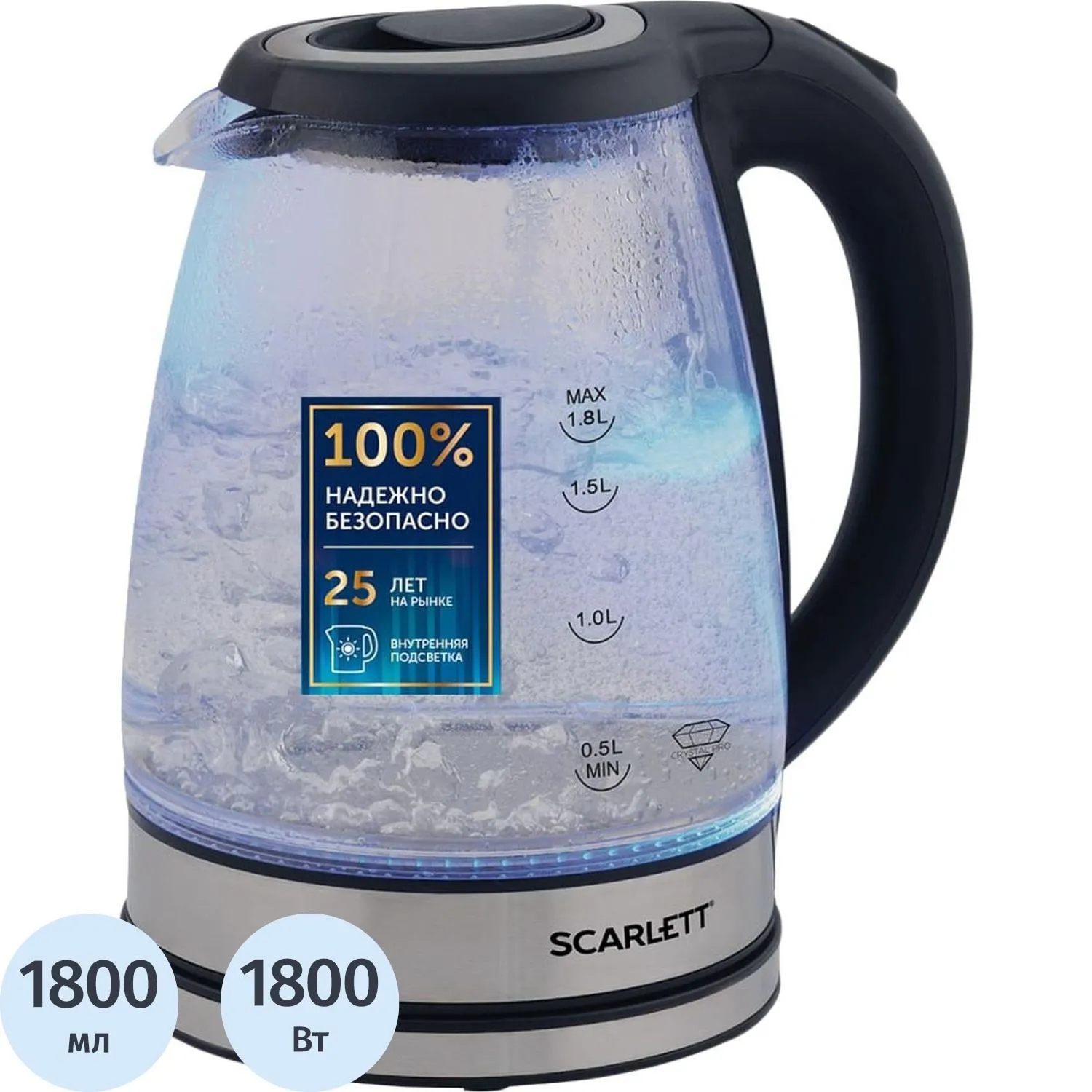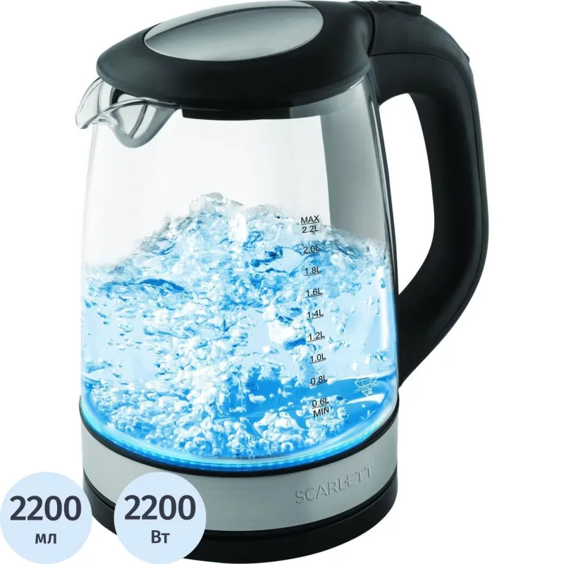Чайник Scarlett SC - EK27G19, 2200 Вт 2,2л, стеклянный корпус