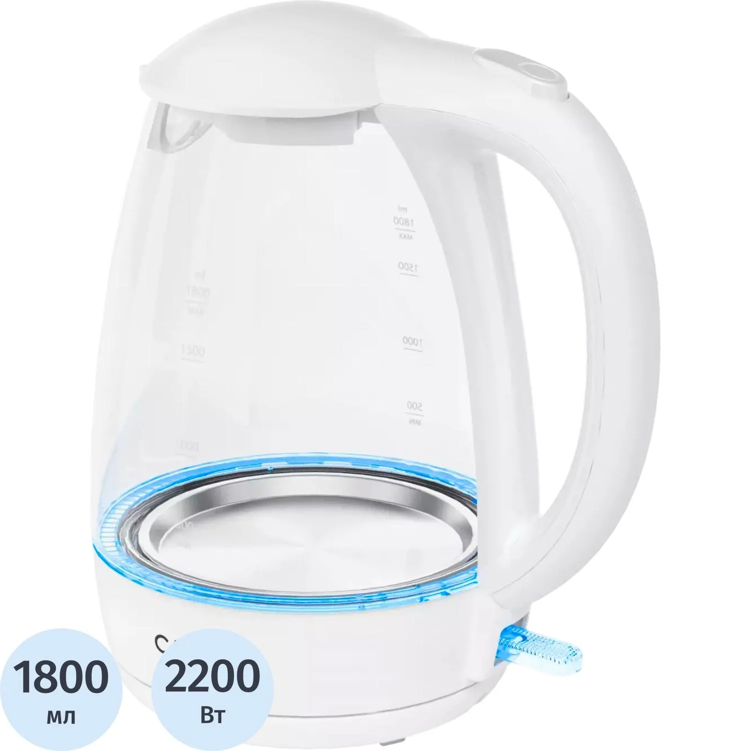 Чайник электрический BRAYER BR1040WH, 2220Вт, 2 л, стекл., белый