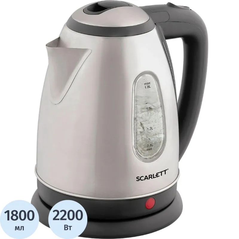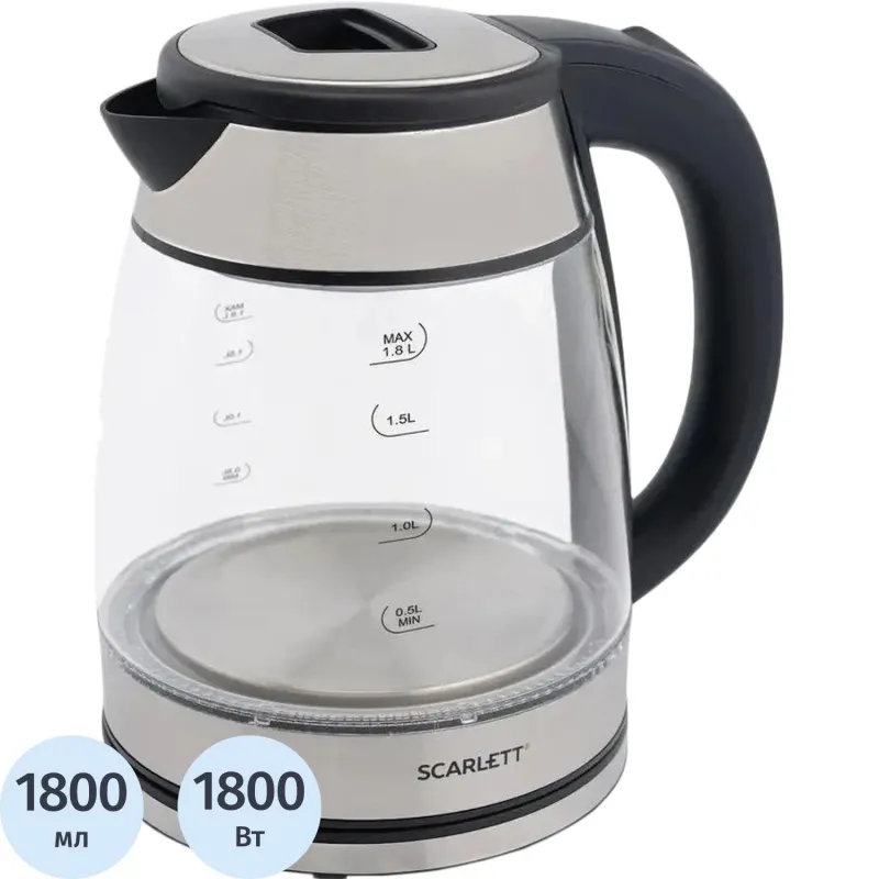 Чайник SCARLETT SC-EK27G103, электрический, 1800Вт, 1.8л, стекло/сталь