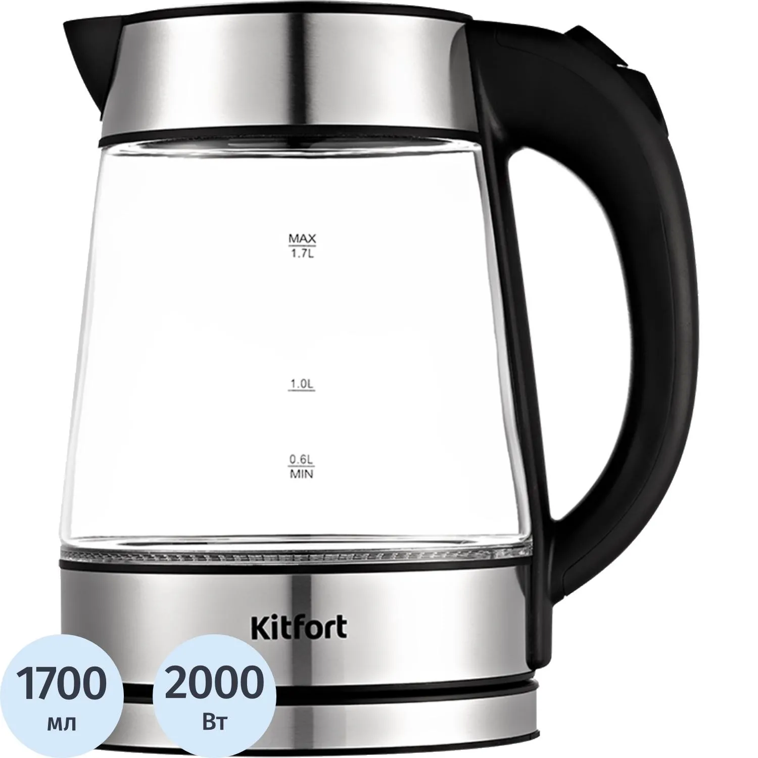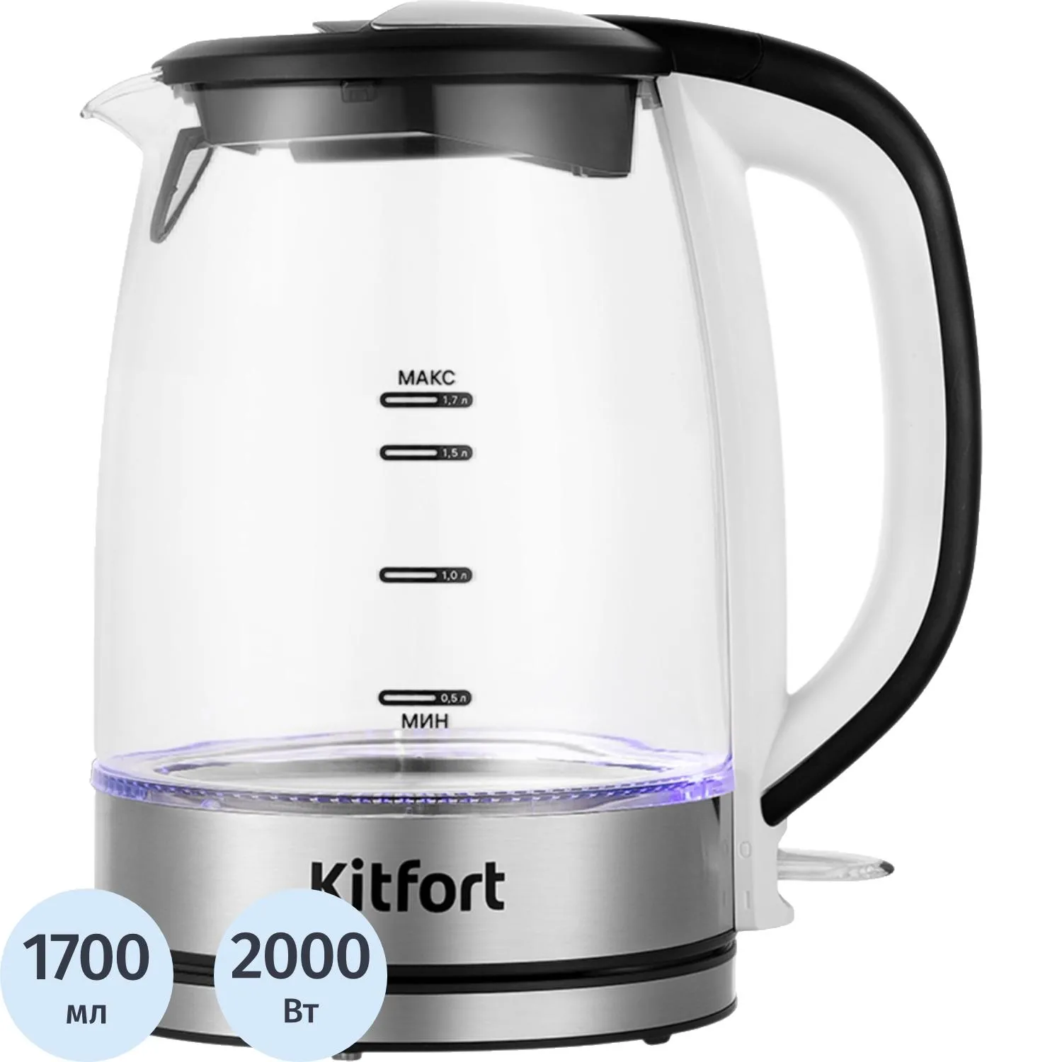 Чайник электрический BRAYER BR1030,2.2 кВт, 1,7 л, стекло,автооткл.,подсвет