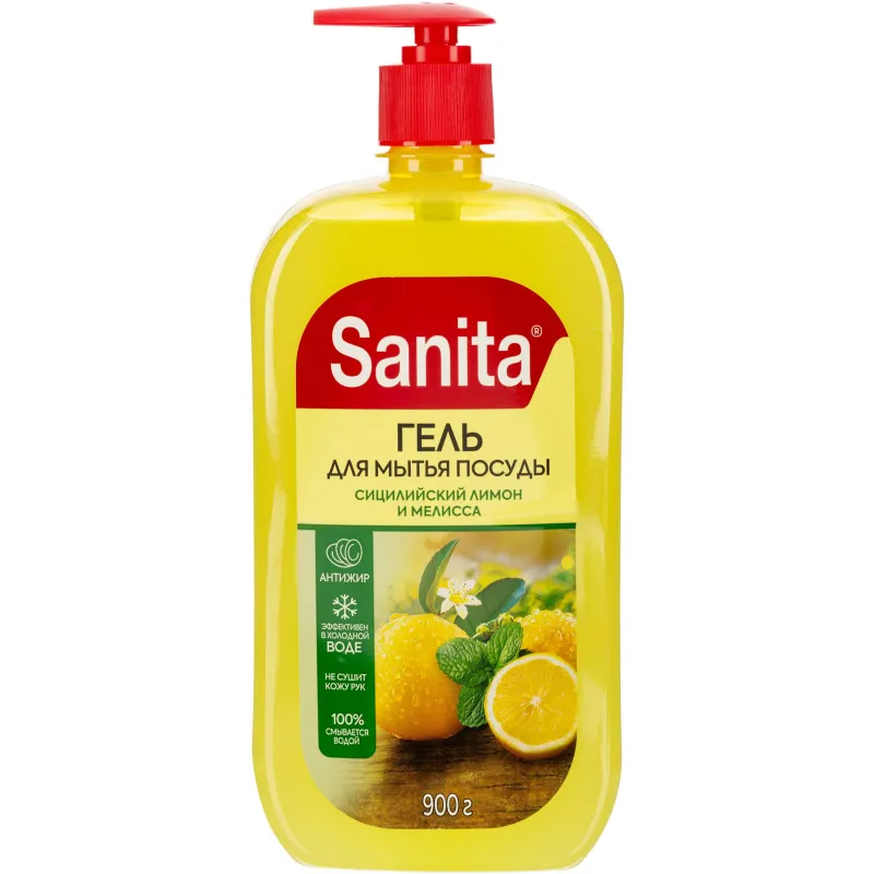 Средство для мытья посуды SANITA Сицилийский лимон и мелисса, 900 г