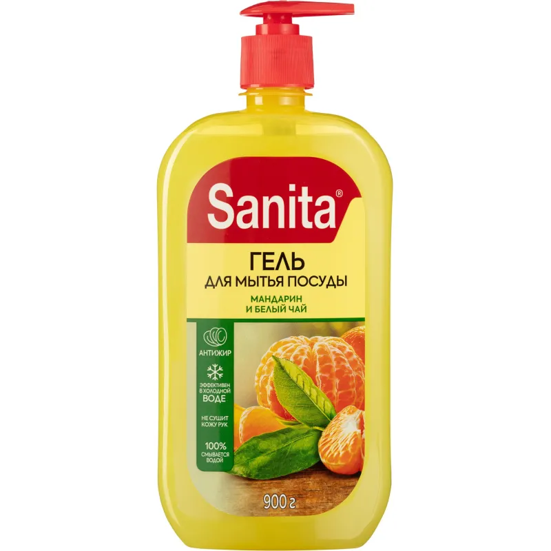 Средство для мытья посуды SANITA Мандарин и белый чай, 900 г